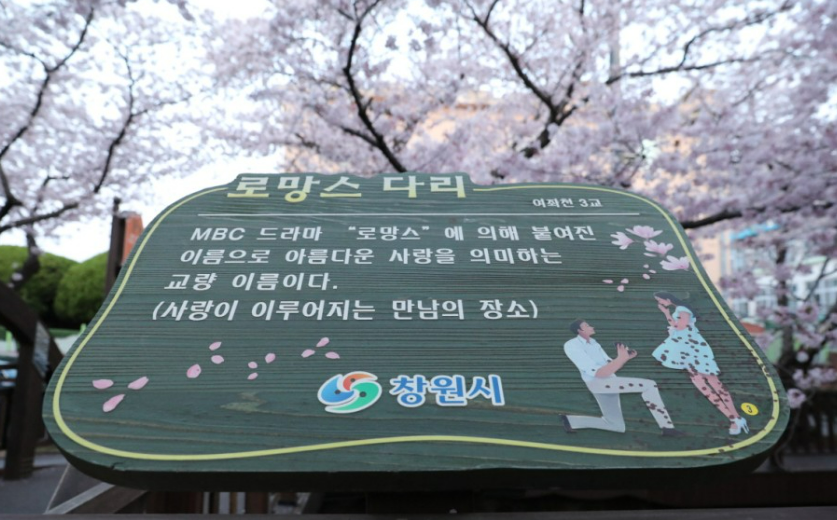 MBC드라마「로망스」촬영지(2002년)로 주연배우(관우와 채원)가 진해 군항제를 구경 와서 처음 만남을 가진 곳으로, 방송이 되자마자 일명 [로망스다리]로 불리며 관광명소가 되었다. 총 1.5Km 벚꽃길은 한국의 아름다운 길 100선에 선정되고, CNN선정 한국에서 가봐야 할 아름다운 50곳 중 17위로 선정된 낭만 가득한 벚꽃명소다.
