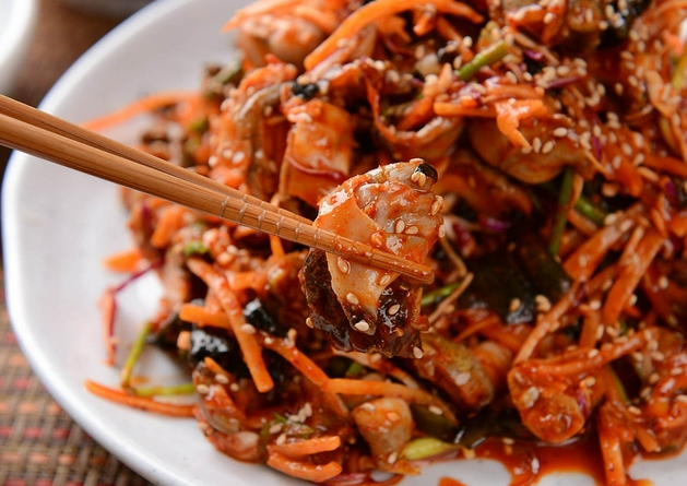 소라를 야채와 함께 볶아서 밥 위에 얹어 먹는 요리입니다. 대파, 양파, 당근 등의 재료를 함께 볶아서 먹으면 좋습니다.