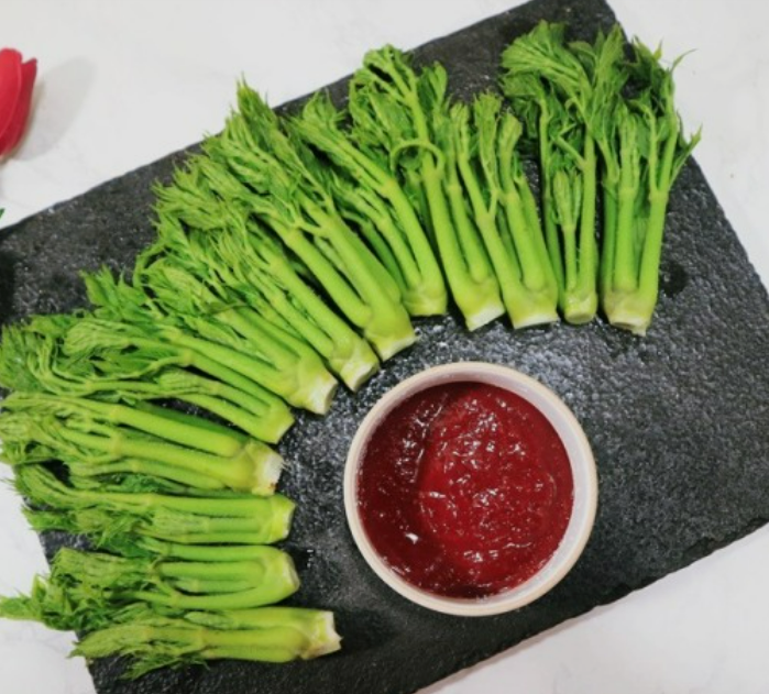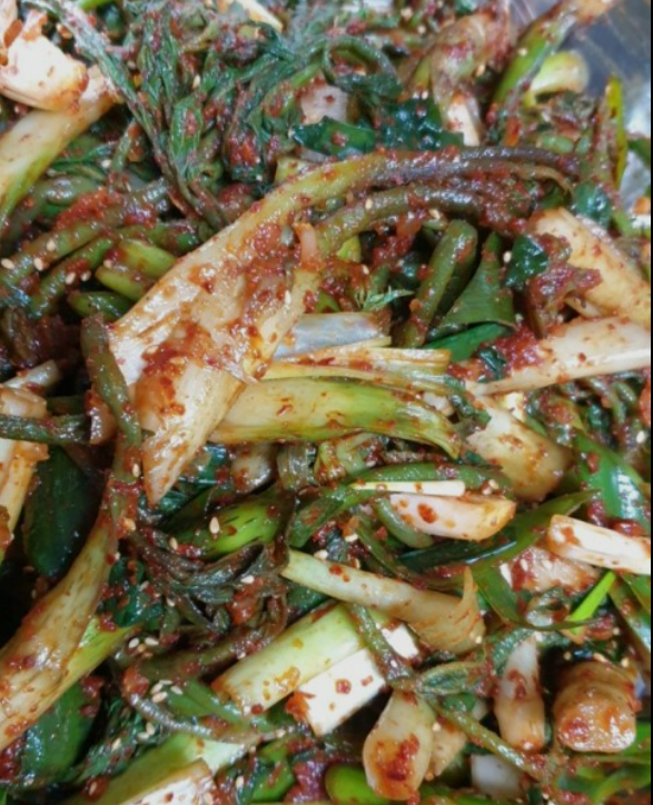 두릅을 소금에 절인 후 김치 양념장을 넣어 만든 김치입니다. 두릅의 특유의 향과 김치의 매운 맛이 조화를 이루어 맛있게 먹을 수 있습니다.