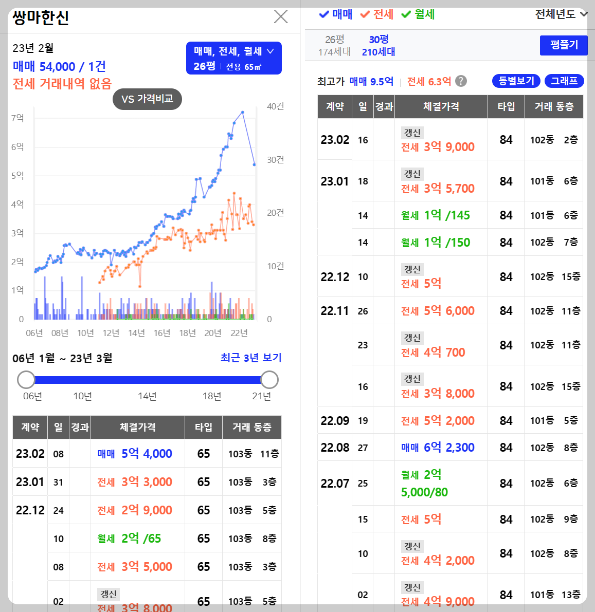 쌍마한신 (출처 : 호갱노노 & 아실_2023.03.07)