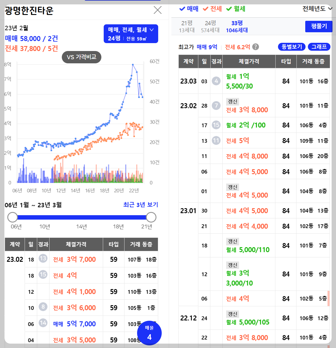광명한진타운 (출처 : 호갱노노 & 아실_2023.03.07)