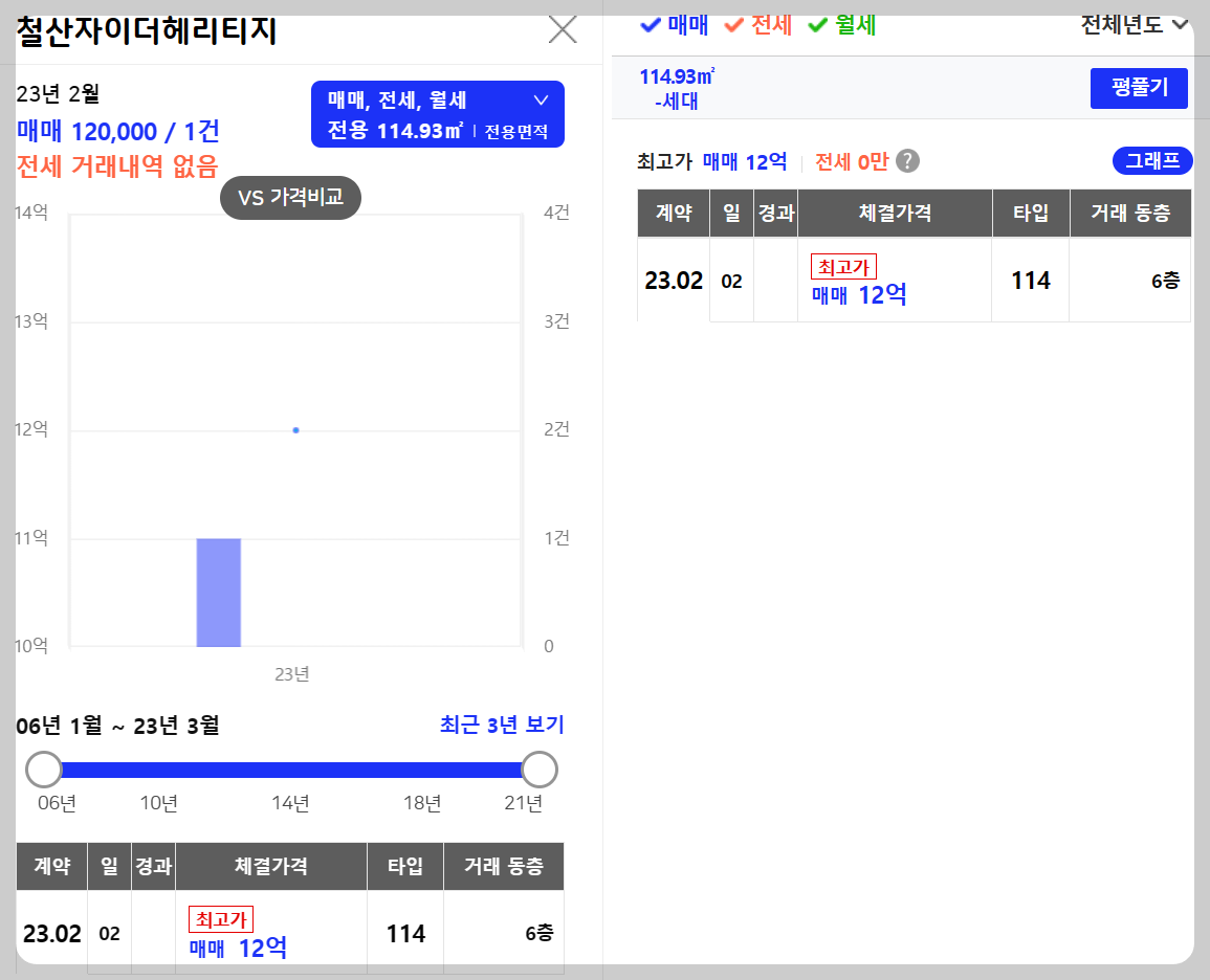 철산자이더헤리티지 (출처 : 호갱노노 & 아실_2023.03.07)