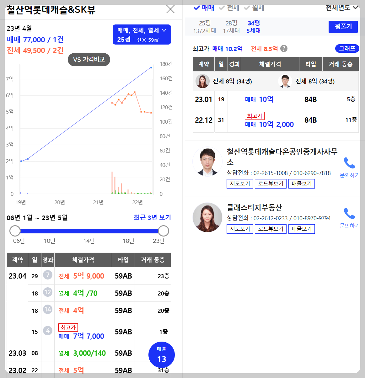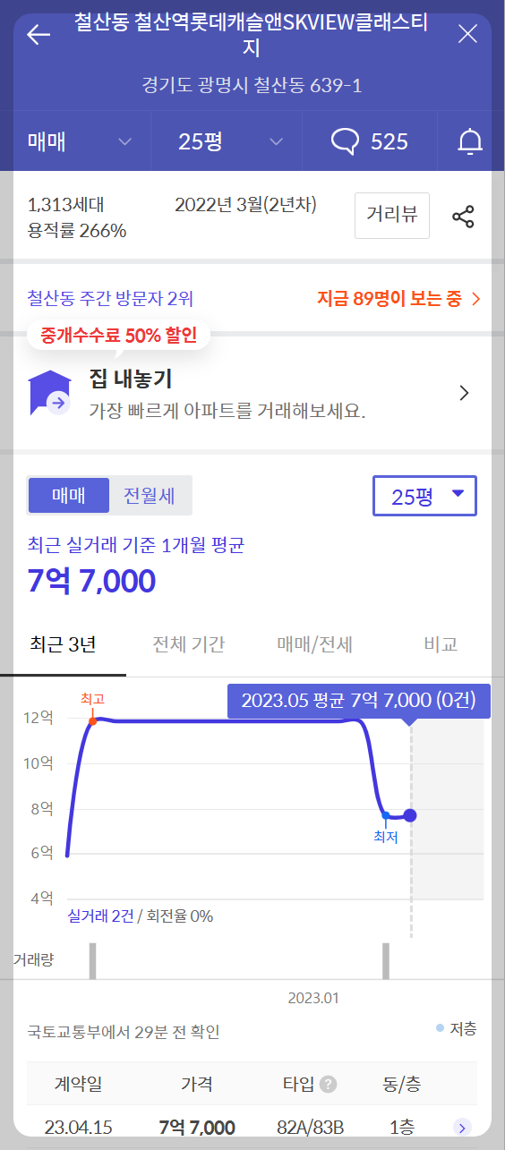 철산역 롯데캐슬&SKVIEW클래스티지 (출처 : 호갱노노 & 아실_2023.05.08)