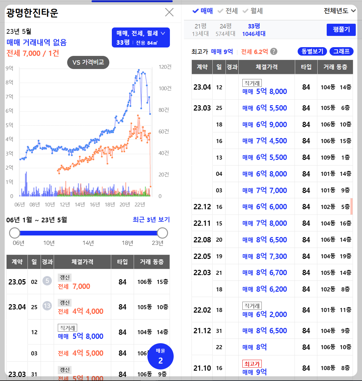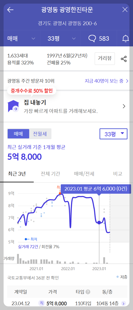 광명한진타운 (출처 : 호갱노노 & 아실_2023.05.08)
