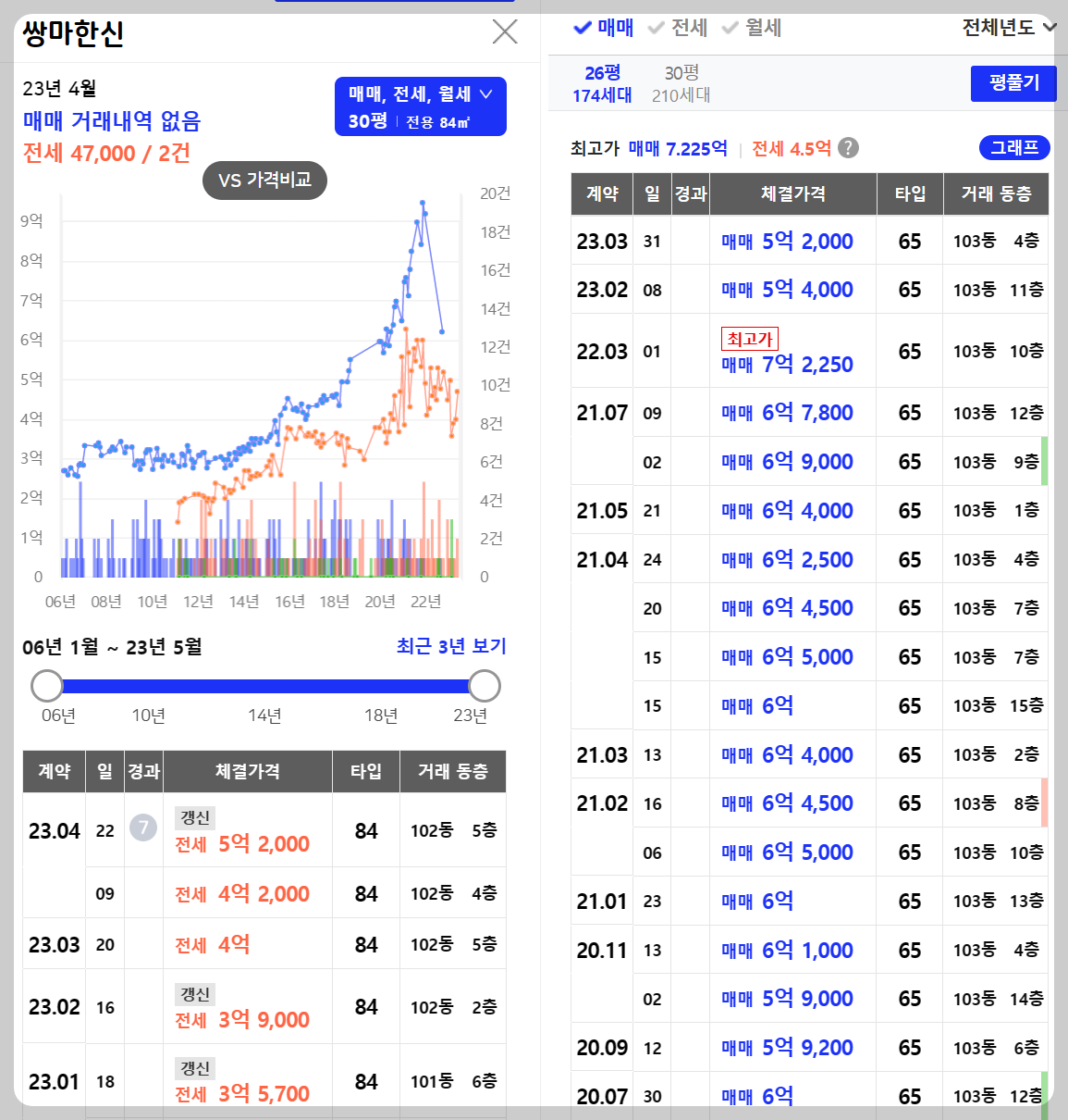 쌍마한신 (출처 : 호갱노노 & 아실_2023.05.08)