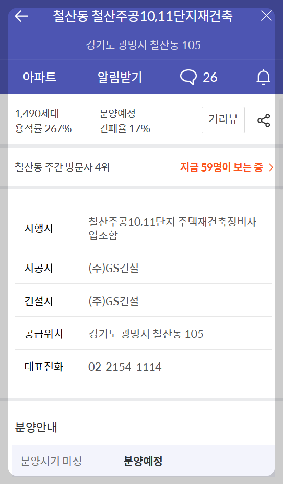 - 시행사 : 광명제5R구역 주택재개발정비사업조합
