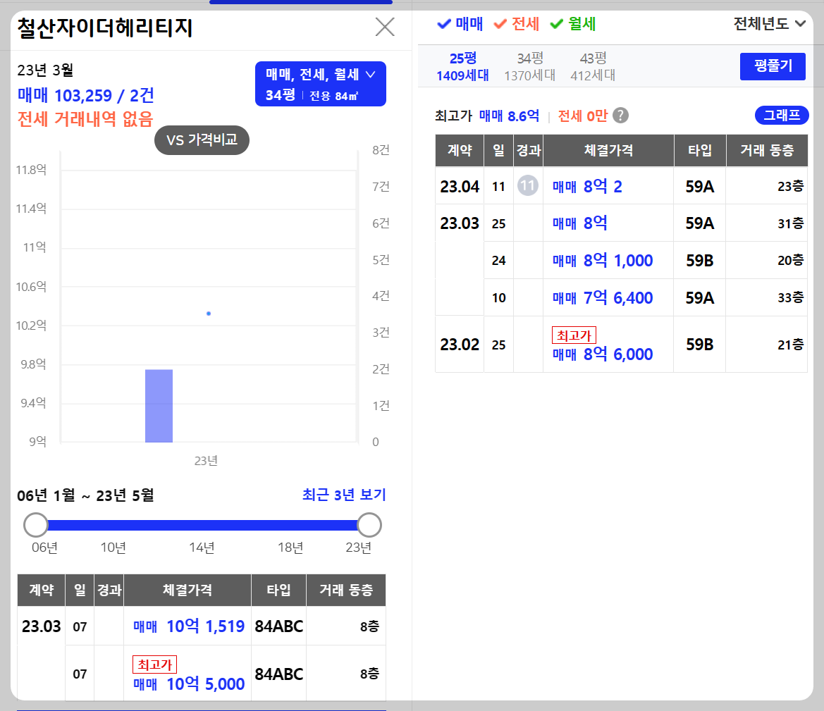 철산자이더헤리티지 (출처 : 호갱노노 & 아실_2023.05.08)