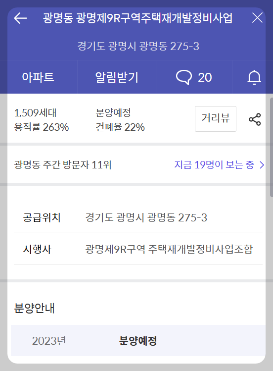 - 사업명 : 광명 제5R구역 주택재개발정비사업