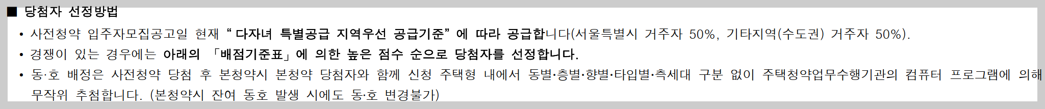 - 대상 : 사전청약 입주자모집공고일 현재 서울특별시, 인천광역시 및 경기도 지역 거주하는 성년자인 무주택세대구성원