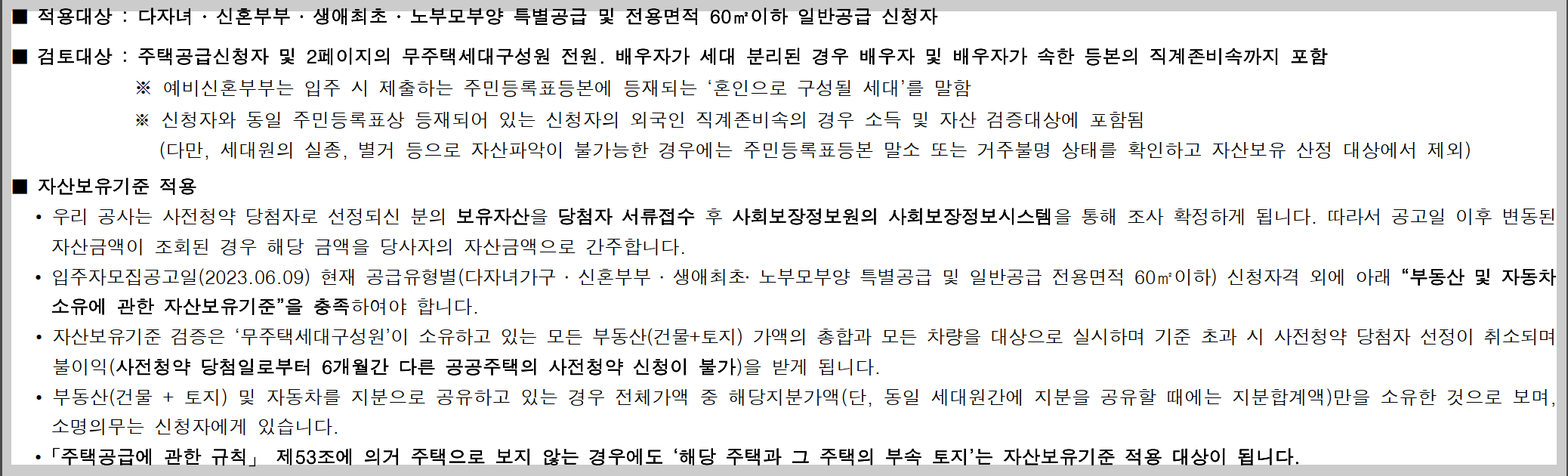 공급 유형별 신청자격 및 자격 검증 대상