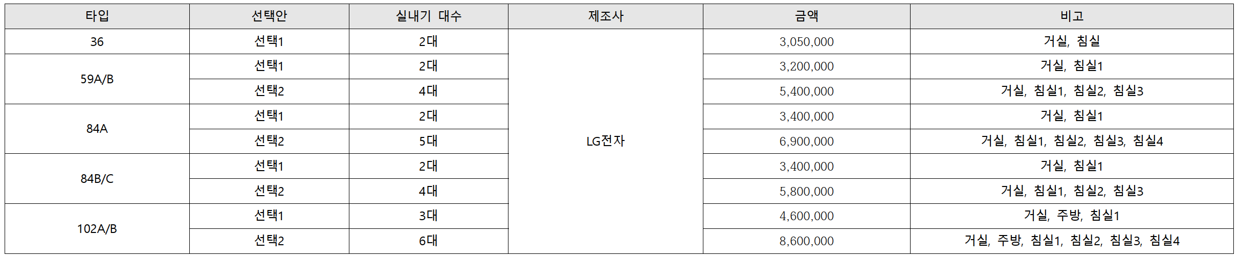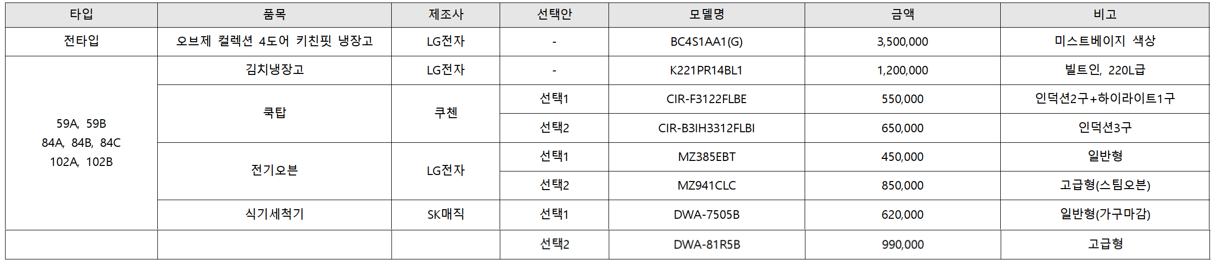 - 주택형 : 36㎡, 59㎡, 84㎡, 102㎡