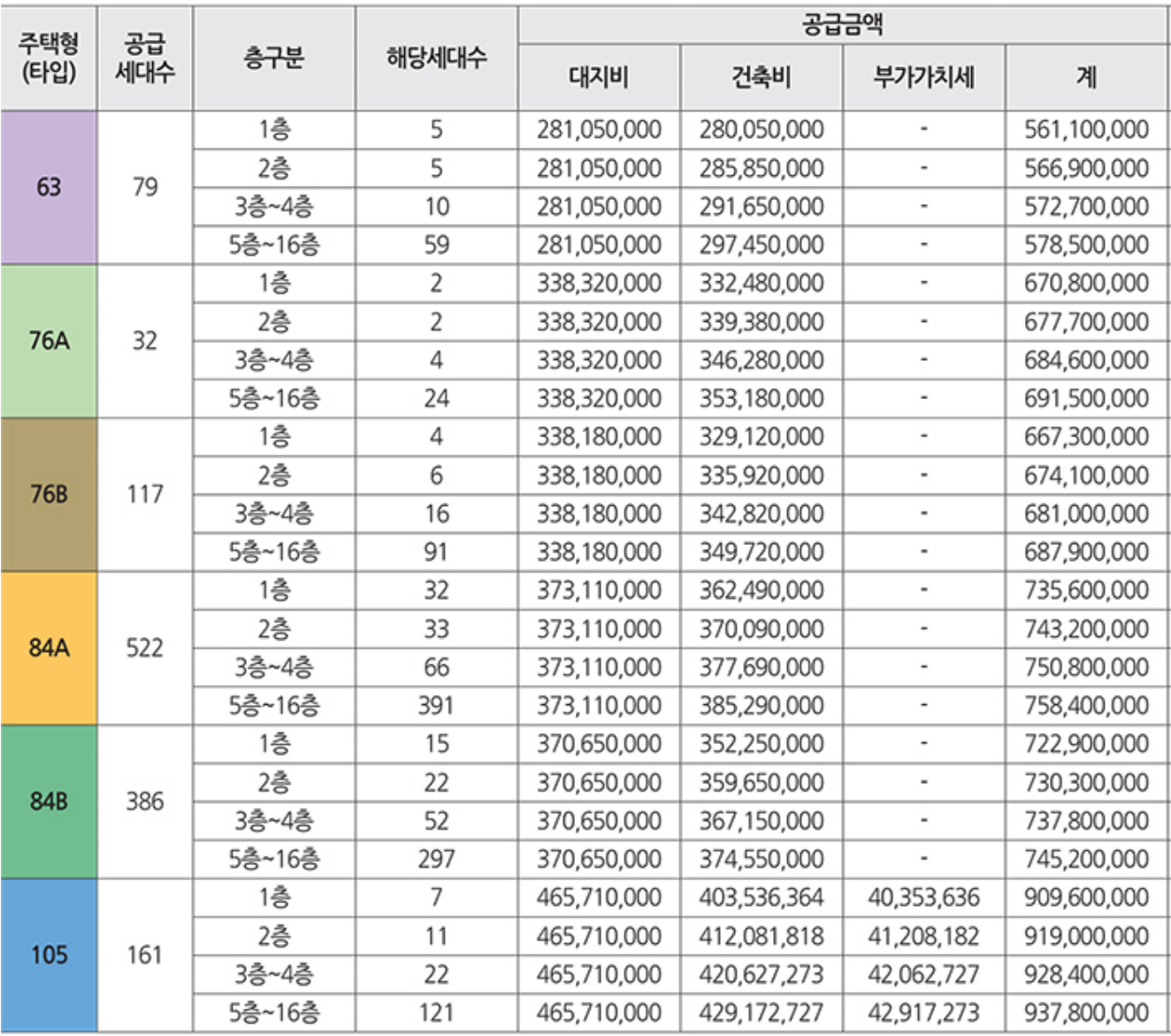 - 주택형 : 63㎡, 76㎡, 84㎡, 105㎡