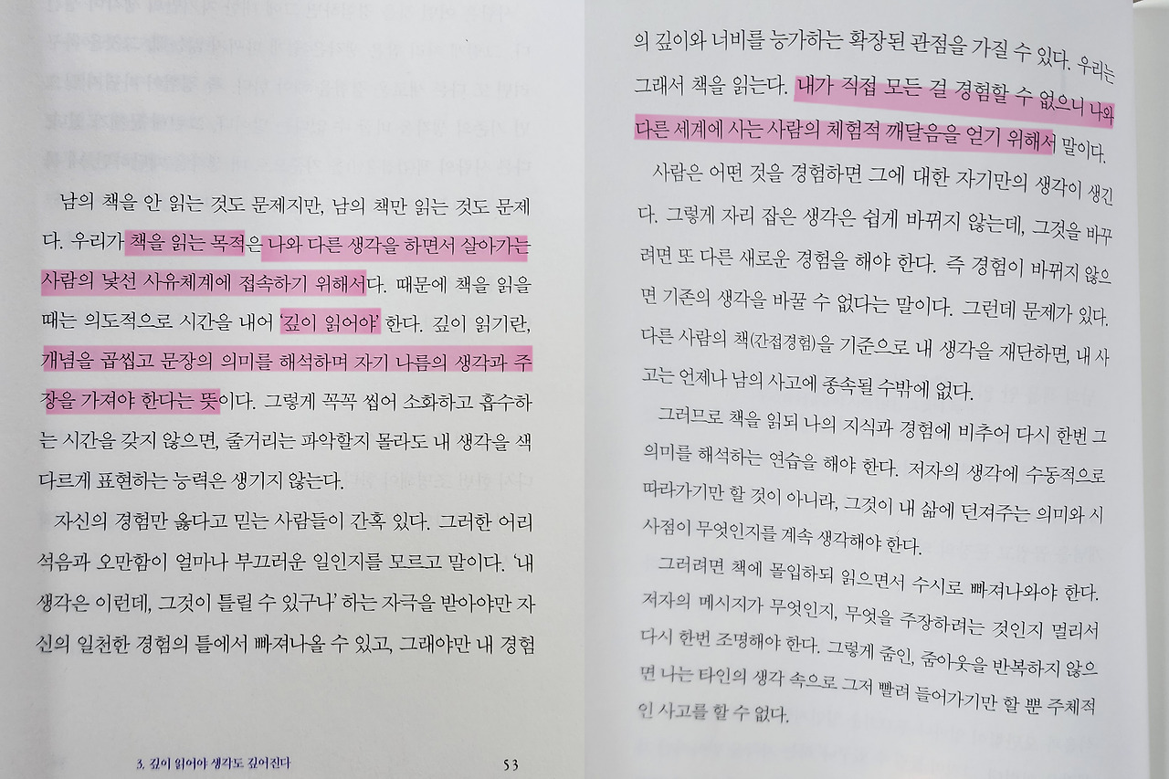 때문에 책을 읽을 때는 의도적으로 시간을 내어 '깊이 읽어야' 한다.