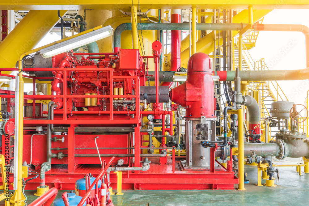 소방 주펌프는 필요한 소화수의 공급량에 따라 1대 또는 2대 이상의 펌프로 구성한다. 소방주펌프의 1대의 최대용량은 1134 M³/Hr 이하가 되어도 방호대상 지역에 설치된 소화설비의 사용 여건에 따라 소방 주펌프를 2대로 또는 그 이상의 수로 나누어 설치할 수 있으며, 또한 그 이상의 수로 나누어 설치하라 수 있으며, 또한 각각의 소화설비 종류별로 필요한 소화수 공급량에 맞도록 소방 주펌프를 분리하여 설치할 수 있다.