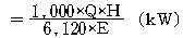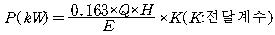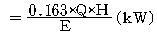 E = 펌프의 효율(전효율 = 기계효율 × 수력효율×체적효율)